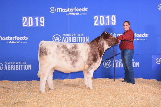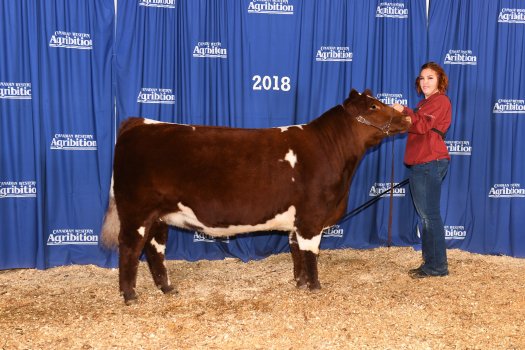 We consider 39Y to have the ideal phenotype of a shorthorn cow. She has hung many banners for us before her “retirement” in 2019.. Some highlights including: CJSA National Show Grand Champion Female (x2) , Young Ranchman’s Supreme Champion Female, 2014 National Show Reserve Grand Champion Female & 2018 Canadian National Champion Female. We have been extremely impressed with the progeny she has left us so far and look forward to what this female has to offer to the shorthorn breed.